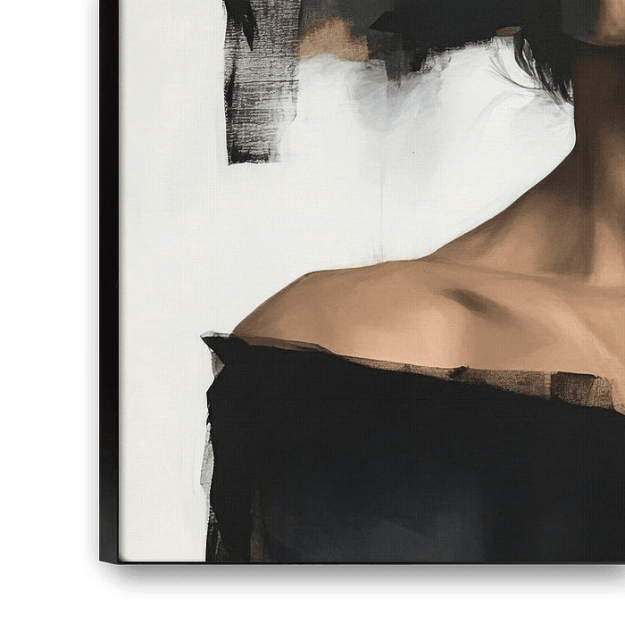 In einem faszinierenden Spiel aus Licht und Schatten schimmert die Silhouette einer Frau, deren Gesicht durch abstrakte Farbblockaden teils verborgen ist. Die kraftvollen Pinselstriche vermitteln eine tiefgreifende Emotion, während die sanften Konturen ihrer Schultern einen Kontrast zur dynamischen Unruhe über ihrem Kopf bilden. Ein eindringliches Bild der inneren Zerrissenheit.