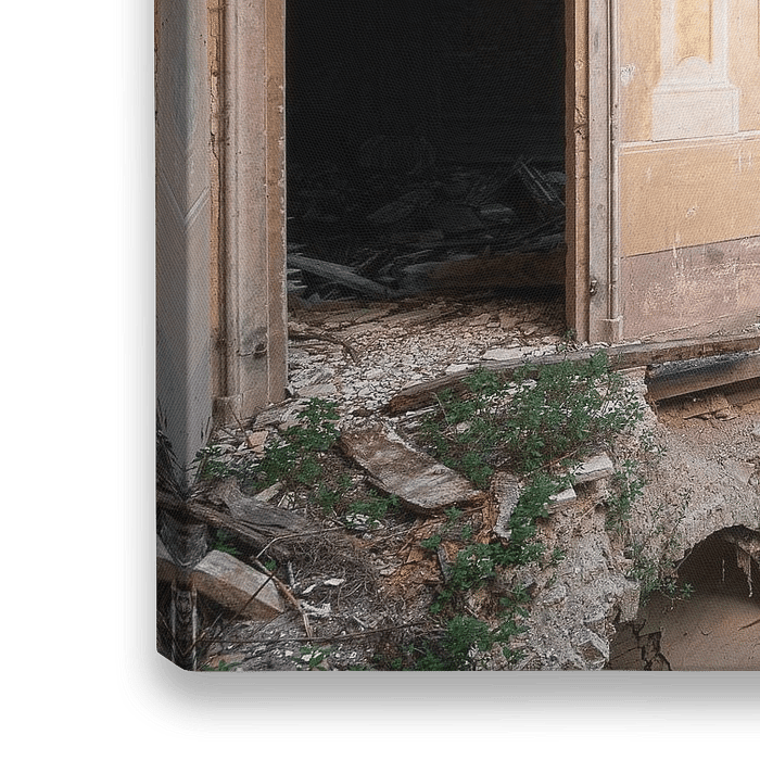 Dies ist ein Foto eines schönen italienischen Hauses, das leider verfallen ist. Das Dach und der Boden stürzten ein. An der Wand sind noch immer schöne Verzierungen zu sehen, die ich auch im Rest des Gebäudes gefunden habe. Es wird voraussichtlich nicht lange dauern, bis auch der Rest des Gebäudes zusammenbricht.