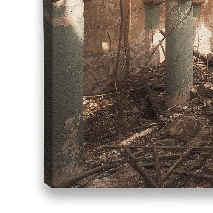 Dies ist ein Bild des Inneren einer verlassenen Synagoge in Rumänien. Ich habe das Foto an einem schönen sonnigen Tag aufgenommen und Sie können immer noch ein Stück des schönen blauen Himmels oben auf dem Bild sehen. Das Dach der Synagoge ist zusammengebrochen und das Gebäude selbst ist gerade erst gerade geworden. Besonders zu sehen…
