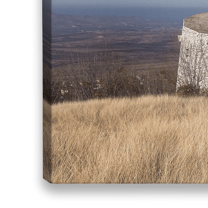 Dies ist ein Foto eines verlassenen Denkmals hoch auf einem Berg irgendwo in Bulgarien. Unten im Denkmal ist ein Stein, der wie ein Grab aussieht. Das Denkmal befindet sich in einer wunderschönen Umgebung, umgeben von Bergen und viel Grün. Die örtliche Jugend hat das Denkmal leider mit Graffiti verziert. Das Denkmal wurde anlässlich des…