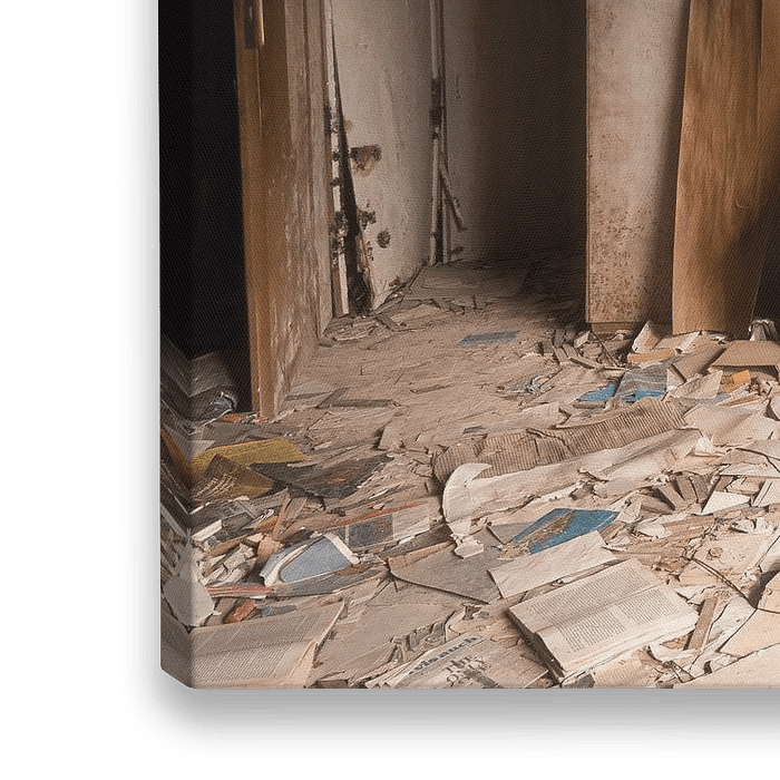 Dies ist ein Foto in einem Zimmer voller Bücher in einem verlassenen Haus. Das Haus gehörte zu einem Arzt, der seine Praxis fast neben diesem Raum hatte. Es ist schon eine ganze Weile aufgegeben worden und ich war schon zweimal hier. Bis auf eine Menge Sachen, die sich magisch zu einem anderen Ort bewegt haben, hat sich nichts wirklich verändert. Der Verfall ist ganz nett.