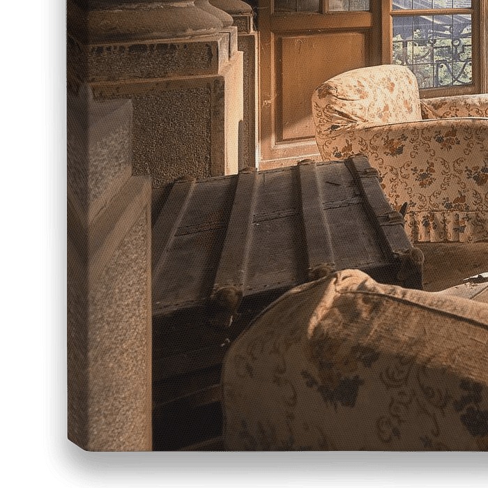 Dies ist ein Foto, das ich in einer verlassenen Villa genommen habe, die im frühen 20. Jahrhundert gebaut wurde. Es hat 4 Ebenen und zeichnet sich durch große architektonische Details aus. Der Blick über das Dorf von diesem Zimmer war super.