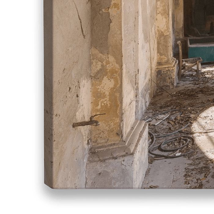 Dieses ist ein Foto des schönen Hofes eines verlassenen Klosters. Das Kloster wurde zu Beginn des 17. Jahrhunderts gegründet. Es wurde etwa 200 Jahre später geschlossen. Das Gebäude wurde später als eine Schule und als Krankenhaus verwendet. Es ist seit ein paar Jahrzehnten geschlossen.