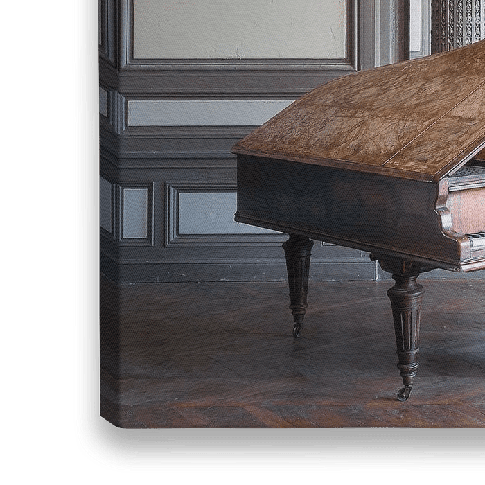 Dies ist ein Bild eines Klaviers, das ich in einem verlassenen Schloss in einem beige-braunen Raum gefunden habe. Das Schloss ist im Allgemeinen noch in gutem Zustand, aber bis auf das Klavier völlig leer.