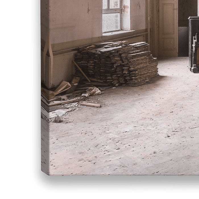 Dies ist ein Foto, das ich im Tanzraum einer ehemaligen Bar gemacht habe. Der Raum ist stark verfallen und man sieht einige Löcher im Boden und an der Decke. Das Klavier ist jedoch in einer ziemlich guten Form und sieht gut aus.