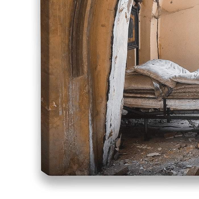 Dies ist ein Bild des Schlafzimmers in einem verlassenen Haus. Ein Teil des Hauses ist eingestürzt, und der größte Teil des Hauses ist stark verfallen. Dies ist einer der wenigen, wenn nicht der einzige Raum, der immer noch großartig aussieht.