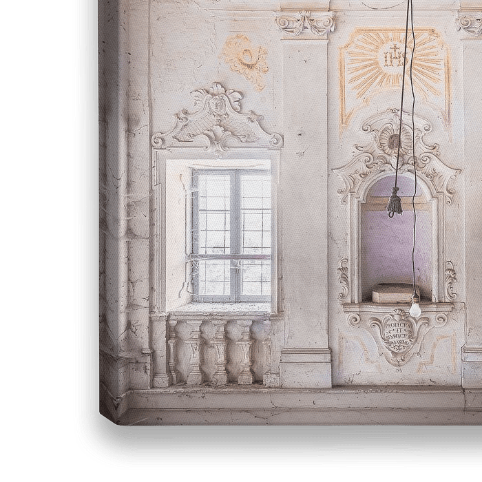 Dies ist ein Foto, das ich in der Nähe der Haupttreppe einer verlassenen Villa aufgenommen habe. Die Villa war von großen Feldern umgeben, die von Bauern genutzt wurden. Einige Räume in der Villa stürzten ein. Ich kann nur hoffen, dass dieses schöne Fresko an der Decke des Treppenhauses überleben wird. Der große Riss in der Mitte ist…
