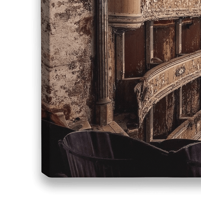Bestelle das Foto Verlassenes rotes Theater von Times of Impermanence als Reproduktion auf Leinwand, Alu-Dibond, als Poster, Fototapete oder Acrylglasbild.