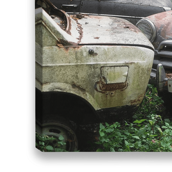 Dies ist ein Bild eines verlassenen Autos, das rostet. Das Auto ist Teil einer Privatsammlung von jemandem, der verschiedene Marken und Modelle in seinem Garten hat. Einmal wegen der Teile gekauft. In der Zwischenzeit der Natur auf Gedeih und Verderb ausgeliefert.