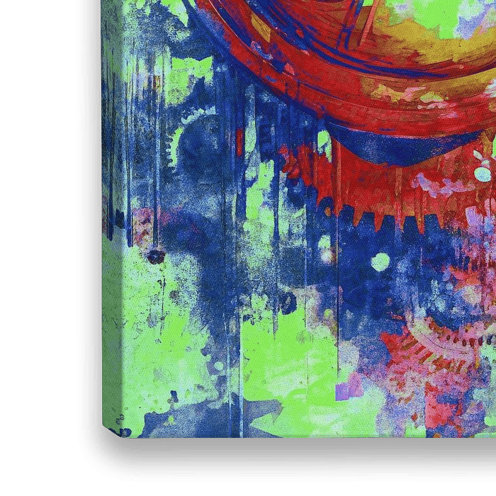 Die tropfende feuchte Farbe könnte sowohl den Zerfall als auch die kreative Freiheit darstellen, die in der Struktur und Ordnung der Zeit fehlen. Die Zusammensetzung erzeugt insgesamt eine emotionale Palette von Chaos, Kontrolle, Freiheit
