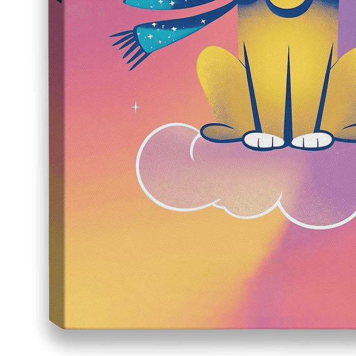 Dieses lebendige Design zeigt einen niedlichen Löwen mit einem farbenfrohen, verspielten Look. Der Löwe sitzt auf einer Wolke und ist von Sternen umgeben, was ihm eine verträumte Ausstrahlung verleiht. Die auffälligen Farben wie Gelb, Rosa und Lila fügen sich nahtlos in den Hintergrund ein und sorgen für einen fröhlichen und verspielten…