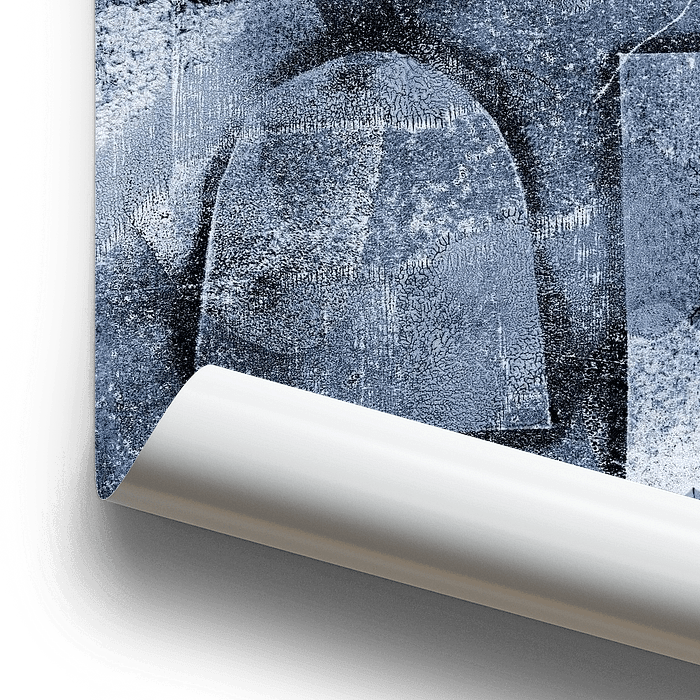 Bestelle dieses Landschafts-Wandbild Wabi-sabi blaue Brücken. Moderne abstrakte Kunst. von Dina Dankers als Reproduktion auf Leinwand, Alu-Dibond, als Poster, Fototapete oder Acrylglasbild.