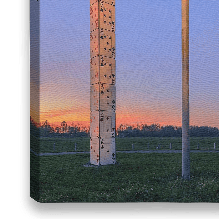 Hoch über der Wiese stehen drei Türme: ein 'Kartenturm', ein 'Namensturm' mit dem Wort 'Groningen' darauf und 'Die Säule des Jokers'. Laut dem Architekten John Hejduk symbolisiert diese Stadtmarkierung die Zeit, die viele Geschichten erzählt.