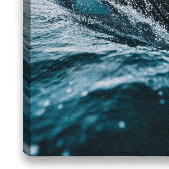 Ein majestätisches Wesen erhebt sich aus den tiefblauen Wellen, während raue Wolken den Himmel überlagern. Tropfen glitzern im Licht und zeugen von der Kraft des Ozeans. Die sanfte Kurve des Schwanzen lässt erahnen, welche Geheimnisse in den Tiefen verborgen sind, während die stürmische Stimmung eine atemberaubende Dynamik verleiht.