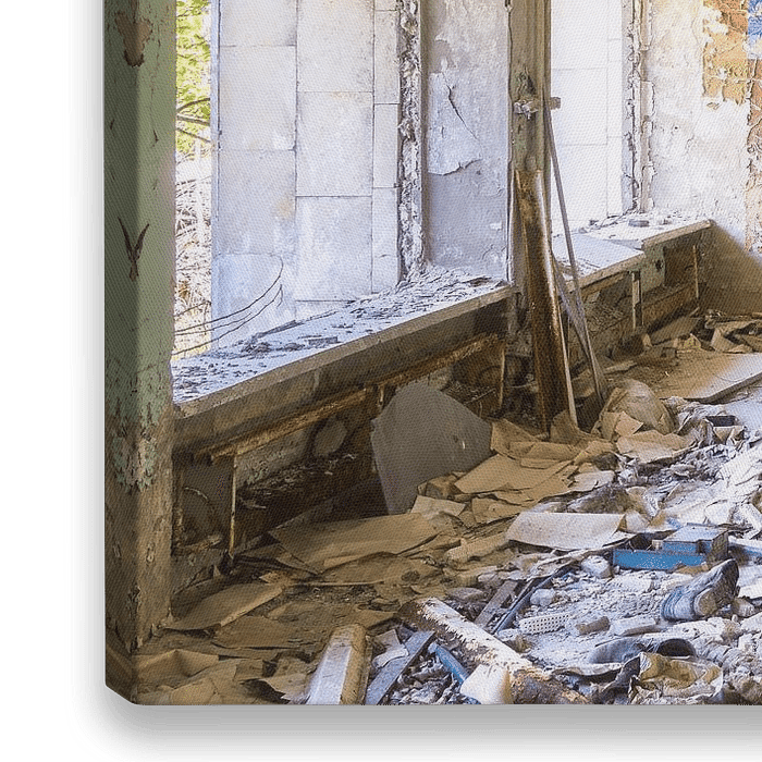 Bestelle das Foto Wandgemälde in Pripjat. von Roman Robroek – Fotos verlassener Gebäude als Reproduktion auf Leinwand, Alu-Dibond, als Poster, Fototapete oder Acrylglasbild.
