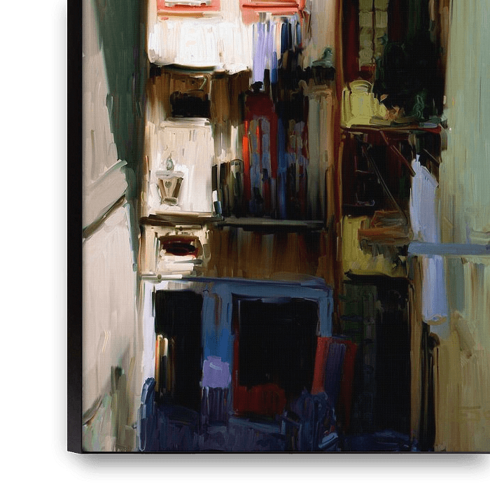 Ihre gewählte Kunst auf Leinwand, gespannt in einem Aluminiumrahmen. Schnell und einfach austauschbar für eine frische Ausstrahlung und ganz nach Ihren Wünschen.