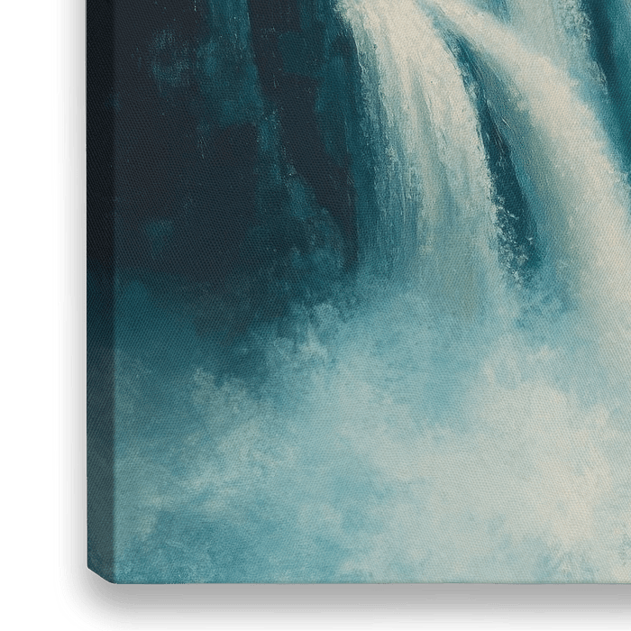 Ein zauberhafter Wasserfall, dessen sanft rausches Wasser harmonisch in einen nebligen Morgen eintaucht, entfaltet eine beruhigende Atmosphäre. Die sanften Blau- und Grautöne fördern Gelassenheit und laden zum Träumen ein. Perfekt für ein Schlafzimmer, schafft dieses Bild einen friedlichen Rückzugsort, ideal zum Entspannen und Nachdenken.