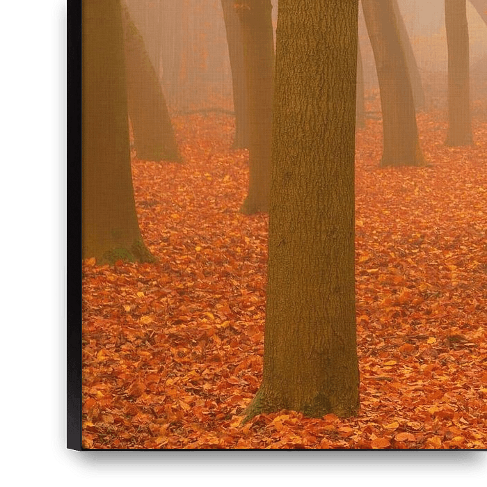 Bestelle dieses Landschafts-Wandbild Weg durch eine neblige Buchenlandschaft bei schönem Herbstwetter von Sjoerd van der Wal Fotografie als Reproduktion auf Leinwand, Alu-Dibond, als Poster, Fototapete oder Acrylglasbild.