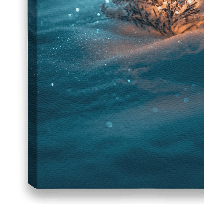 Ein glitzernder, schneebedeckter Weihnachtsbaum strahlt in der frostigen Winterlandschaft. Die warmen Lichter sorgen für eine magische Atmosphäre und laden zum Träumen ein. Dieses zauberhafte Kunstwerk eignet sich hervorragend für das Wohnzimmer, um festliche Stimmung und Gemütlichkeit zu verbreiten. Ideal für besinnliche Abende im…