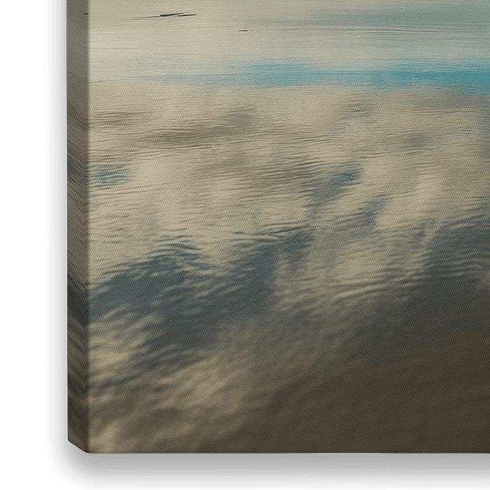 Inmitten einer surrealen Landschaft harmonieren der festlich gekleidete Weihnachtsmann und majestätische Rentiere mit dem reflektierenden Wasser. Die Weite des Himmels und die kühle Farbpalette strahlen Ruhe und Magie aus. Dieses Bild verleiht jedem Wohnzimmer eine zauberhafte Weihnachtsatmosphäre und lässt den Geist der Feiertage…