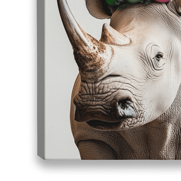 Eine kreative Fusion aus Natur und Festlichkeit: Ein majestätisches Nashorn wird zum unwahrscheinlichen Christbaum-Träger, mit einem kleinen Tannenbaum und bunten Kugeln auf dem Kopf. Dieses skurrile Kunstwerk sorgt für ein Lächeln und wird zum perfekten Blickfang im Wohnzimmer, wo es Freude und Gespräche anregt.