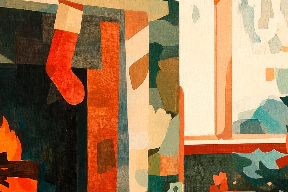 Ein einladendes Winterwunderland entfaltet sich, wo leuchtende Weihnachtslichter und festlich geschmückte Geschenke Harmonie verbreiten. Der knisternde Kamin strahlt Gemütlichkeit aus und lädt zum Verweilen ein. Perfekt für das Wohnzimmer, wo Familie und Freunde gemeinsam die besinnliche Zeit genießen können und Erinnerungen geschaffen werden.