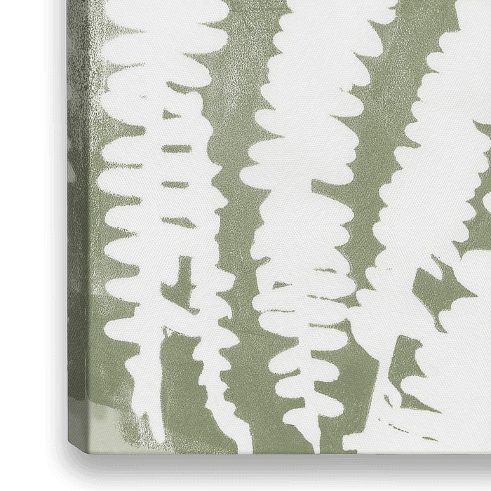 Bestelle dieses abstrakte Wandbild Weiße Farne im Japandi Stil. Moderne botanische Kunst in warmem Pastellgrün und Weiß. von Dina Dankers als Reproduktion auf Leinwand, Alu-Dibond, als Poster, Fototapete oder Acrylglasbild.