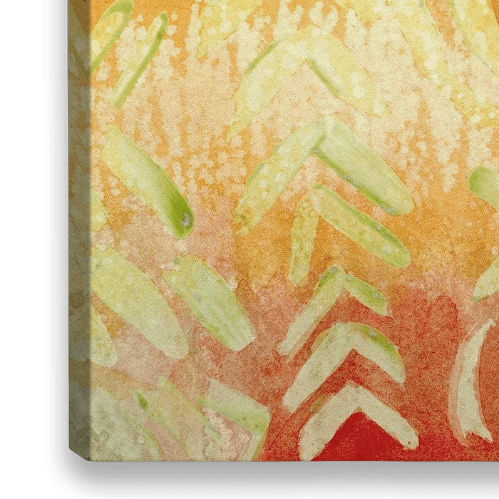 Bestelle dieses abstrakte Wandbild Wellen Orange Gelb von Claudia Gründler als Reproduktion auf Leinwand, Alu-Dibond, als Poster, Fototapete oder Acrylglasbild.