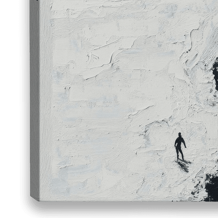 Ein mutiger Surfer wagt sich an die scharfe Grenze zwischen lichtem Schaum und dunkler Tiefe. Die kontrastierenden Farben – strahlendes Weiß und tiefes Blau – erzeugen eine dramatische Spannung, während die Wellenrauschen wie ein berauschendes Versprechen klingen. Hier vereint sich das Gefühl von Freiheit und das Risiko des Unbekannten…
