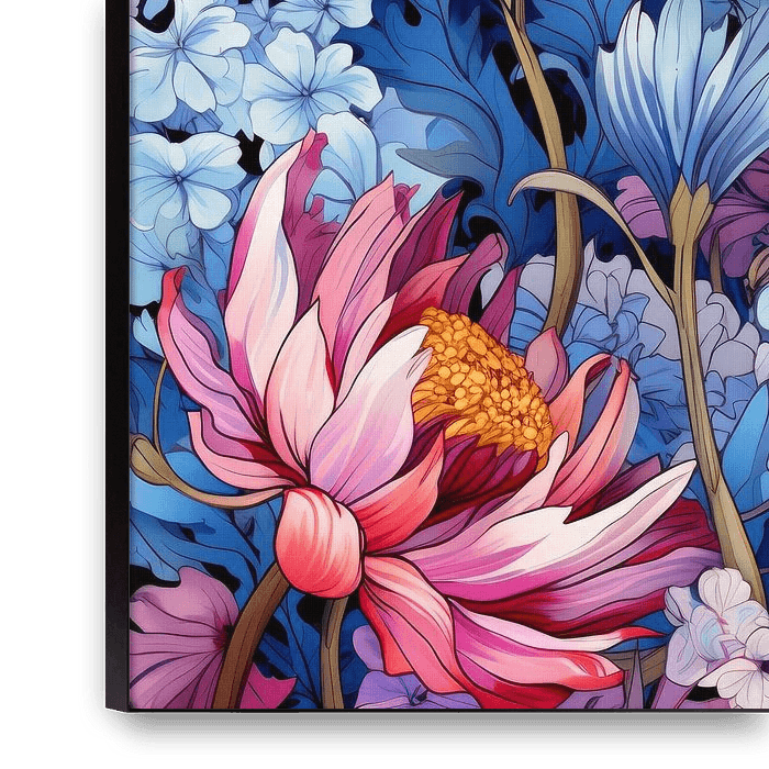 Ihre gewählte Kunst auf Leinwand, gespannt in einem Aluminiumrahmen. Schnell und einfach austauschbar für eine frische Ausstrahlung und ganz nach Ihren Wünschen.