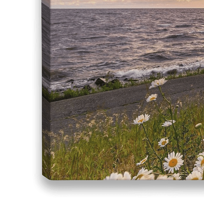 Die Kombination aus den weißen Blumen und den schönen Farben des Himmels machen dieses Bild vollkommen. Dieses Foto würde sich auch auf gebürstetem Aluminium sehr gut machen.