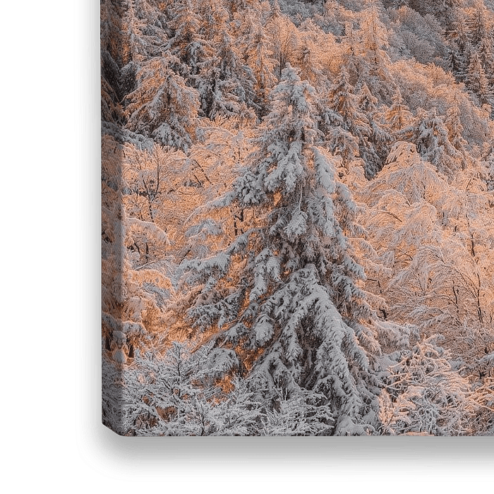 Blick vom Schauinsland über den tief verschneiten Schwarzwald kurz bevor die Sonne hinter einer Nebelbank verschwindet. Sie schafft es gerade noch, die Bäume im Vordergrund in ein schönes Orangerot zu tauchen.