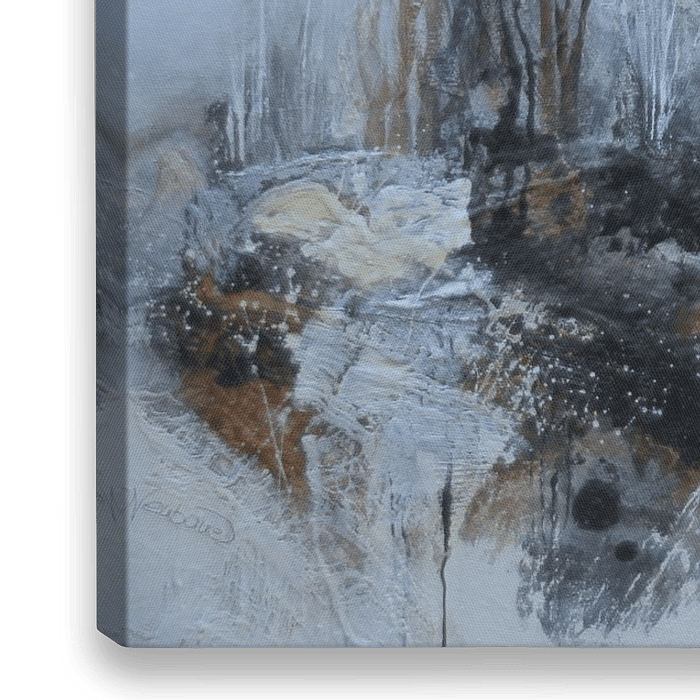 abstraktes Winterbild, Collage, Mischtechnik, winterlich, Ton in Ton,Acrylmalerei, Bäume, Landschaft, Bild für Wohnzimmer oder Schlafzimmer, Ruhe,