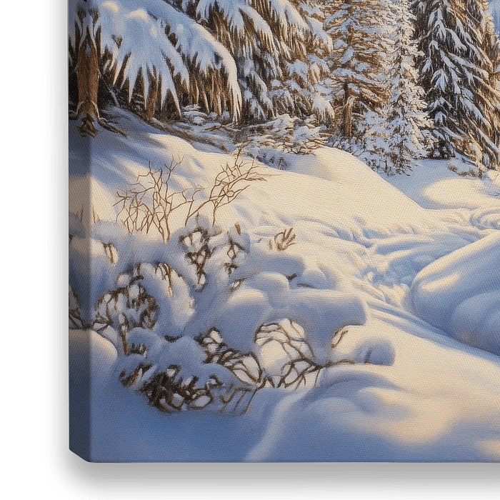 Bestelle dieses Landschafts-Wandbild Winterwald Idylle von Poster Art Shop als Reproduktion auf Leinwand, Alu-Dibond, als Poster, Fototapete oder Acrylglasbild.