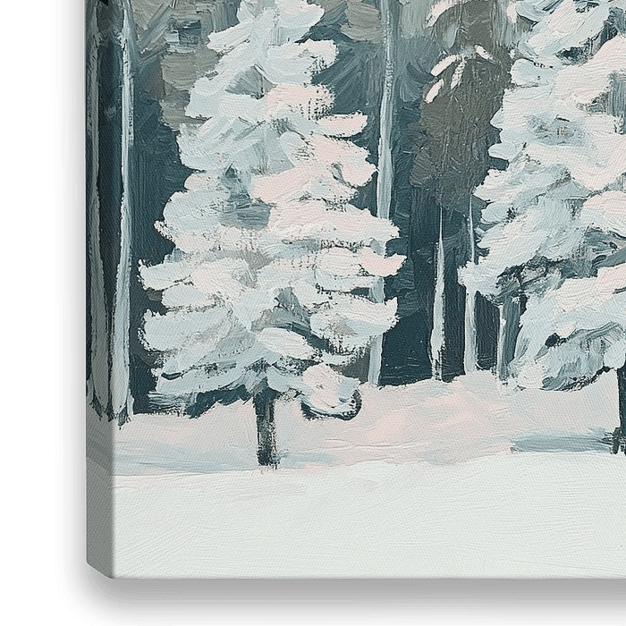 Winterwald | Rosa Winterhimmel - Diese Winterlandschaft zeigt eine ruhige Szene mit verschneiten Tannen unter einem sanften rosa Himmel, die eine ruhige und friedliche Weihnachtsatmosphäre schafft.
