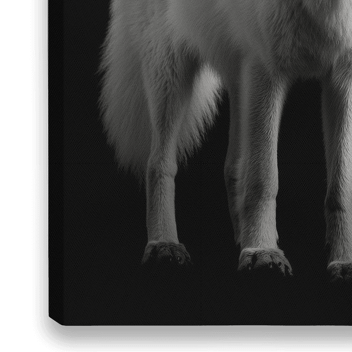 Ein majestätischer weißer Wolf strahlt Stärke und Anmut aus, sein durchdringender Blick zieht die Betrachter in seinen Bann. Der sanfte Kontrast zwischen seinem Fell und dem dunklen Hintergrund schafft eine eindrucksvolle Präsenz, die perfekt in ein modernes Wohnzimmer oder ein stilvolles Büro passt. Ein Blickfang, der Geschichten…