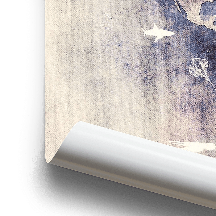 Bestelle dieses abstrakte Wandbild World map 26 sea life #map #worldmap von JBJart Justyna Jaszke als Reproduktion auf Leinwand, Alu-Dibond, als Poster, Fototapete oder Acrylglasbild.