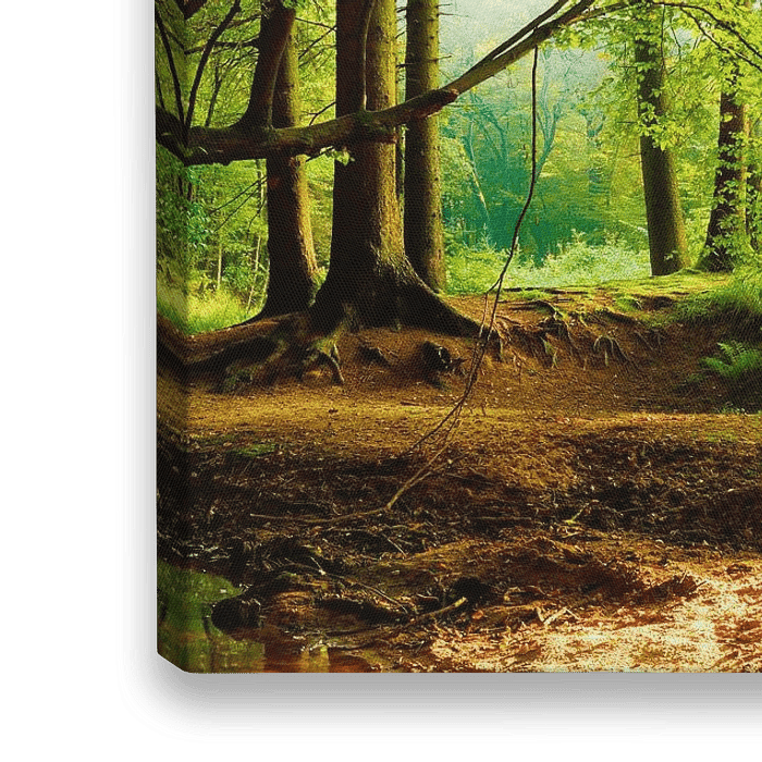 Zauberhafter Wald mit hellem Sonnenlicht im Nebel.