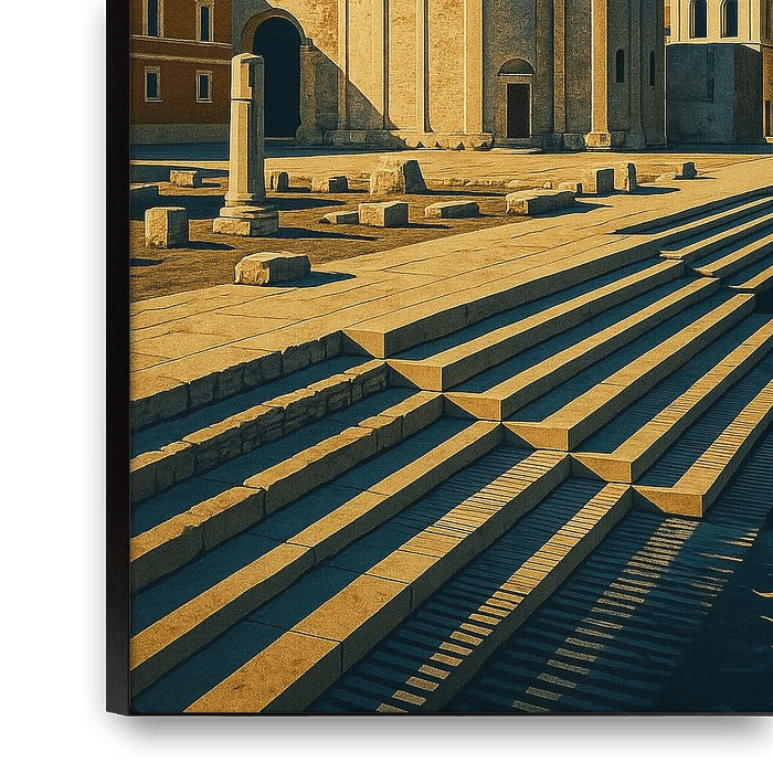 Bestelle dieses Landschafts-Wandbild Zadar Sonnenuntergang Skyline Art Deco Poster von Travel Shop als Reproduktion auf Leinwand, Alu-Dibond, als Poster, Fototapete oder Acrylglasbild.