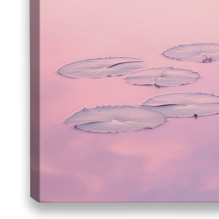 Sanfte Pastellfarben vereinen sich mit der Ruhe schimmernder Wasserflächen, während zarte Seerosen ihre Blüten entfalten. Diese harmonische Komposition strahlt Gelassenheit aus und verkörpert einen Moment der Stille. Ideal für das Schlafzimmer, schafft sie eine entspannende Atmosphäre und lädt zum Träumen ein.