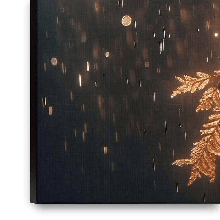 Ein Vogel sitzt allein auf einem Ast, umgeben von einem Schleier aus sanft fallendem Regen, der im Licht der Dämmerung funkelt. Die Tropfen, beleuchtet von einem diffusen Licht, scheinen wie unzählige flackernde Kerzen, die dem kleinen Vogel ihren Glanz leihen. Jedes Federkleid des Vogels ist detailreich zu erkennen und hebt sich ab…