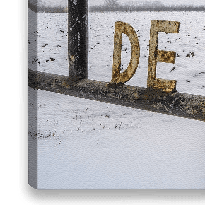 Bestelle das Foto Zaun mit Text DE TOER von Moetwil en van Dijk - Fotografie als Kunstdruck auf Leinwand, Alu-Dibond, als Poster, Fototapete oder Acrylglasbild.