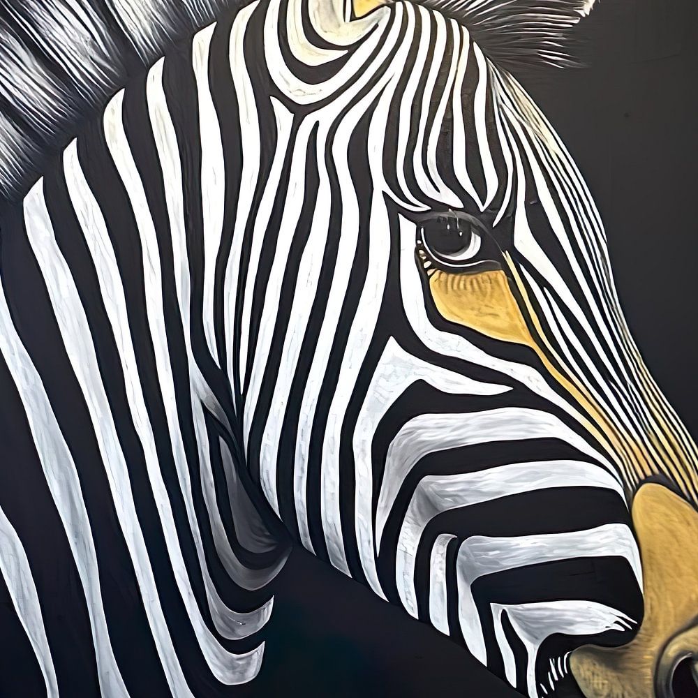 Ein mit Kreidestrichen gezeichnetes Zebra-Porträt zeigt die eleganten Streifen des Tieres in einem fast skizzenhaften Stil. Die raue Textur der Kreide hebt die Kontraste zwischen Schwarz und Weiß hervor und erweckt das markante Muster des Zebras zum Leben. Der minimalistische Hintergrund lässt die Dynamik der Streifen für sich selbst sprechen und verleiht dem Porträt eine zeitlose, erdige Qualität, die das Tier wunderbar einfängt.
