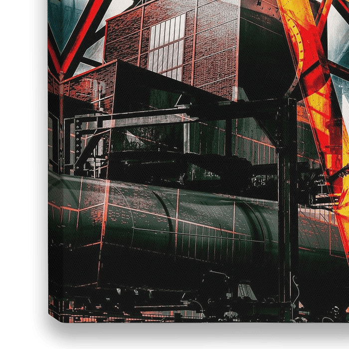 Bestelle dieses abstrakte Wandbild Zeche Förderturm von Dieter Walther als Reproduktion auf Leinwand, Alu-Dibond, als Poster, Fototapete oder Acrylglasbild.