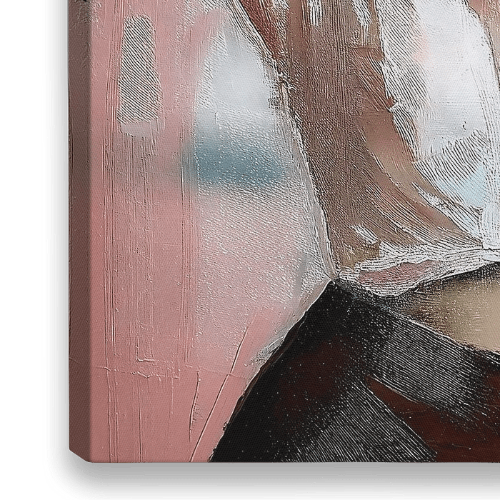 Ein zeitloses Gemälde eines Frauenporträts mit verschiedenen (Leinen-)Texturen.