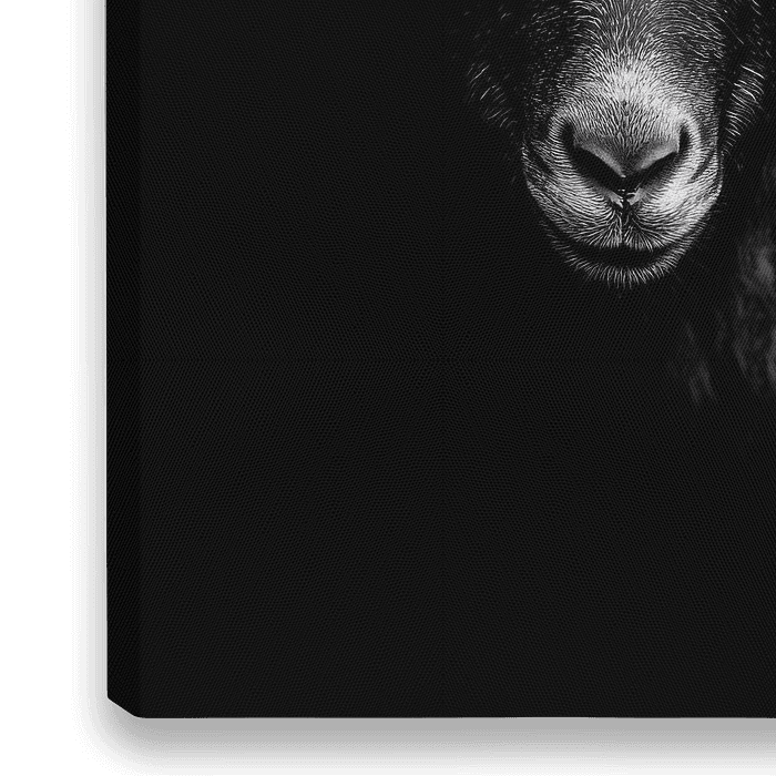 Ein mystisches Wesen mit schimmerndem Schwarz und lebhaftem Ausdruck, dessen angedeutetes Lächeln und markante Hörner den Betrachter in ihren Bann ziehen. Dieses eindrucksvolle Porträt bringt einen Hauch von Tiefe und Charakter in ein modernes Wohnzimmer, wo es als faszinierendes Gesprächsthema dient.