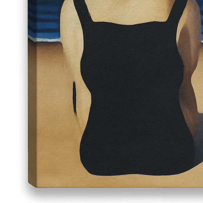 Es ist eindeutig Sommer und diese beiden Damen genießen einen Tag am Strand. Sie tragen Badeanzüge und schützen sich mit einem weißen Hut vor der Sonne. Das ist ein Bild, das jeder wiedererkennt und daher immer Erinnerungen hervorruft