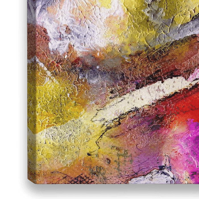 Bestelle dieses abstrakte Wandbild Zwischenstufen Gelb Pink quadrat von Claudia Gründler als Reproduktion auf Leinwand, Alu-Dibond, als Poster, Fototapete oder Acrylglasbild.