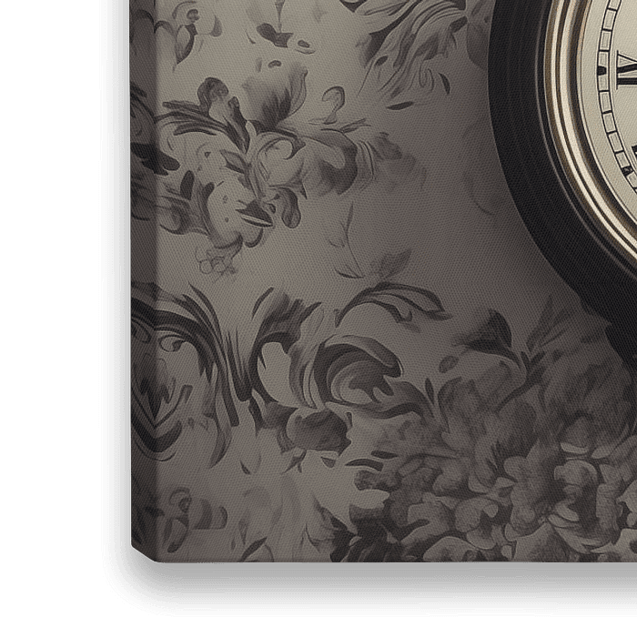 alte Vintage-Wanduhr an der Wand mit Retro-Tapete, monochrom