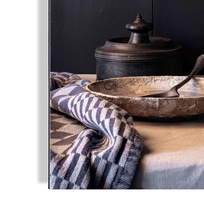 Ein Stillleben, wie es die großen Meister gemalt hätten. Einfache Formen, ruhige Farben und der sanfte Glanz des Zinns und der alten Glaswaren.